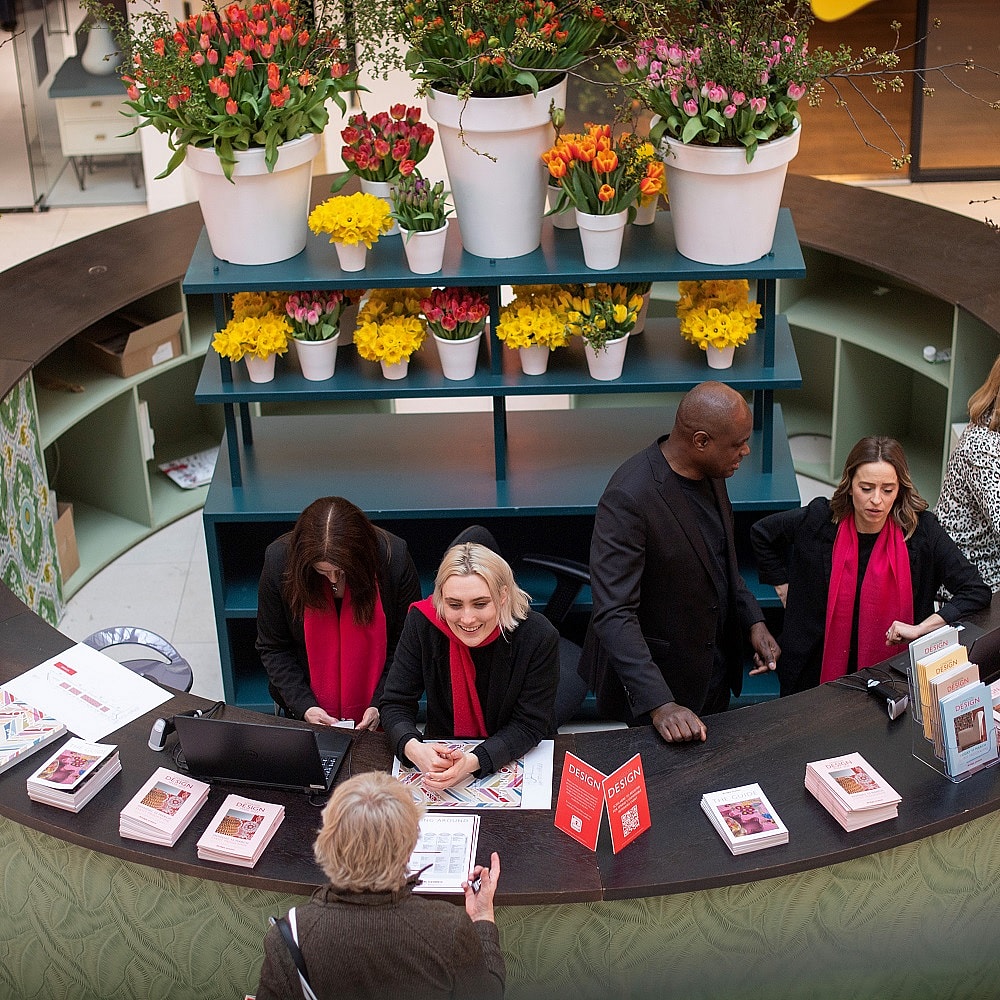 Perk up your day with a complimentary coffee, with an extra shot of design thanks to Turnell & Gigon Group, whose ‘Balcony Stripe’ by Nicky Haslam features on the coffee cups. Simply present your badge to receive your coffee.